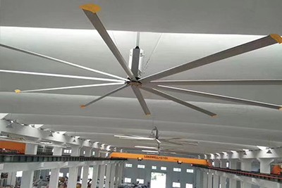 工業(yè)吊扇采用4-9米的鋁型材扇葉通過(guò)1.5KW的電機(jī)驅(qū)動(dòng)大面積的微風(fēng),使得車(chē)間即實(shí)現(xiàn)了降溫又達(dá)到了通風(fēng)的效果。